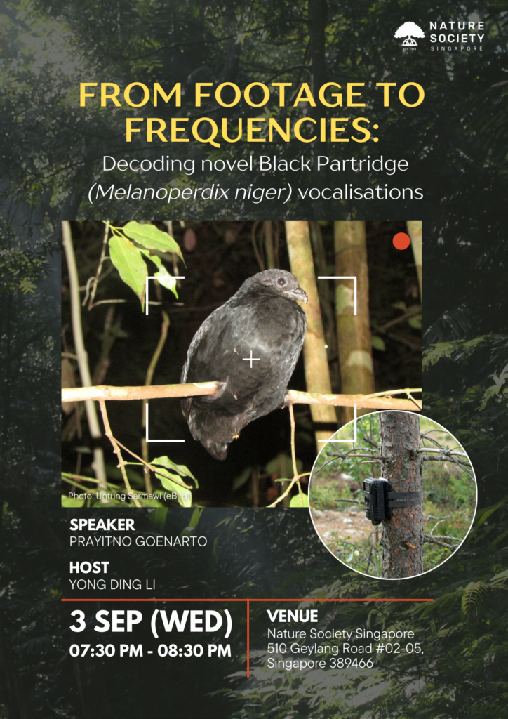 At this talk, Prayitno Goenarto, a biologist working in the tropical forests of Indonesia, shares his latest insights on the natural history of this enigmatic species. Having worked in the peat swamps of Riau Province in Sumatra, Prayitno is one of few lucky individuals to have encountered the species in the wild, and also document its little studied vocalisations. Join this talk, not only to learn about the partridge, but also the peat swamp habitat it inhabits, and some of the biodiversity that share this species-rich environment.